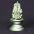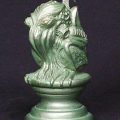 実のところ私はラヴクラフトの世界には疎くて素人同然であります。しかし興味がないわけではないので、とりあえず「らしきもの」を作ってみよういう試み。実は芯自体は数年前に造っており、そのまま頓挫。時を待ってイメージが固まってきたところで一気に仕上げました。正直なところ、クトゥルフが何物なのかさっぱりわかりません。特にテーマも設けておらず、ノンポリで感覚的に全体がまとまるまで作り込んでいきました。像なので多少ラフな感じです。かねてからこういう古来の彫刻然とした物を作りたいと思っていました。ギーガー的要素、ウルトラ怪獣やアウター・リミッツのモンスターの要素などを自分なりに盛り込みました。即興なのでどのようなものが出来るのかが自分でもわかりかねたのですが、ブロンズで仕上げたところ「ガーゴイルのようだ」と意見を戴き、なるほどと思った次第。
